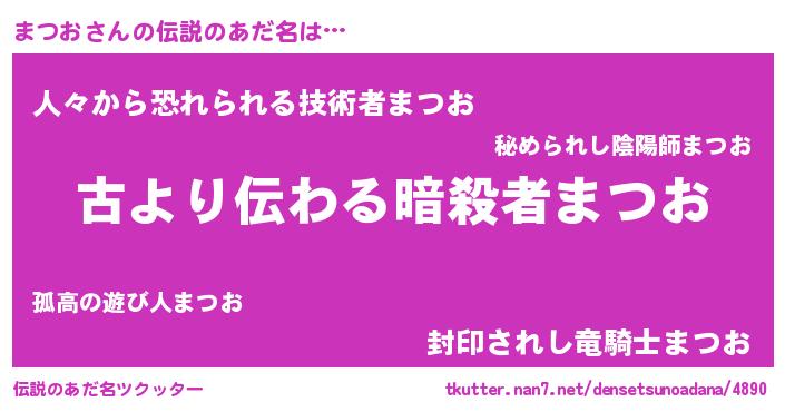 | 女子向けラノベタイトル風あだ名 | 『まつおの契約王妃』『闇のまつお』 |