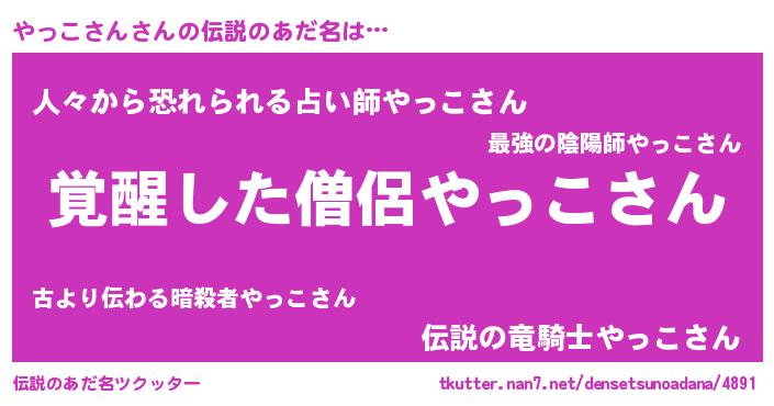 | 男性向けラノベタイトル風あだ名 | 『この素晴らしい世界にやっこさんを!』 |