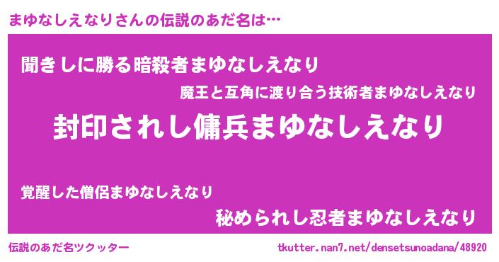 | 胡散臭い通販商品みたいなあだ名 | 『億万長者になれる水晶球…その名も「まゆなしえなり」』 |