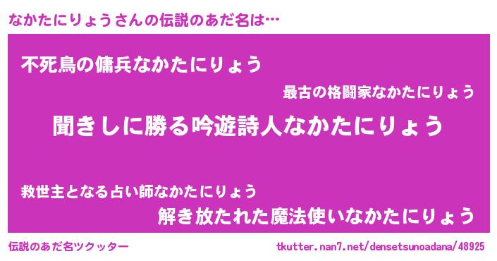 | 意味不明あだ名 | 『永久保存なかたにりょう』 |