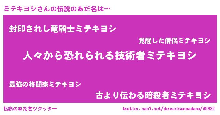 | ヒーロー風カッコイイあだ名 | 『超時空戦士ミテキヨシ』『仮面ミテダー』 |