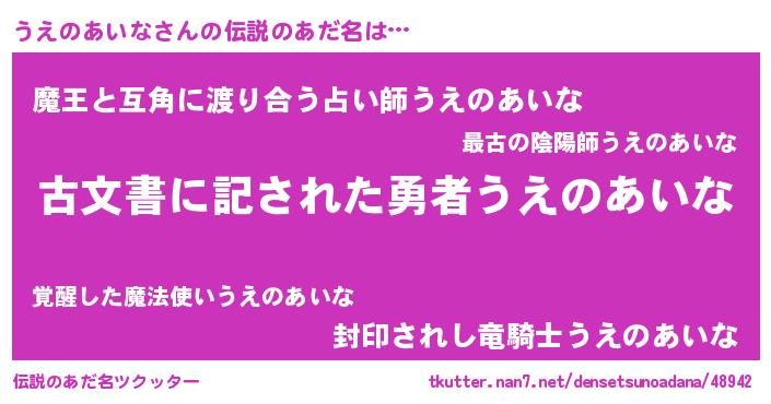 | ヘコむあだ名 | 『うえのあいな(苦笑)』『うえにゅー』 |