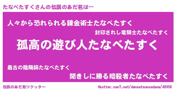 | 胡散臭い通販商品みたいなあだ名 | 『信頼と実績のペンダント…その名も「たなべたすく」』 |