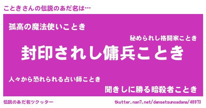 | ヒーロー風カッコイイあだ名 | 『仮面コトダー』『スーパーコトキ』 |