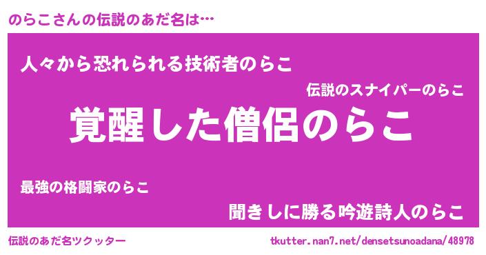 | 意味不明あだ名 | 『とにかく怪しいのらこ』 |