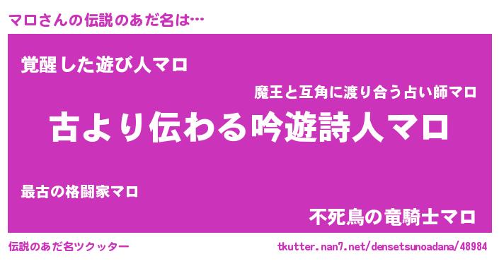 | ヒーロー風カッコイイあだ名 | 『ネオマロ』『天弓騎士マロ』 |