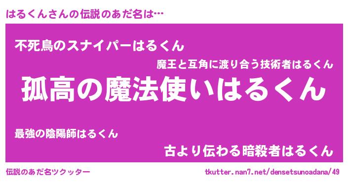 | 胡散臭い通販商品みたいなあだ名 | 『信頼と実績のサプリメント…その名も「はるくん」』 |