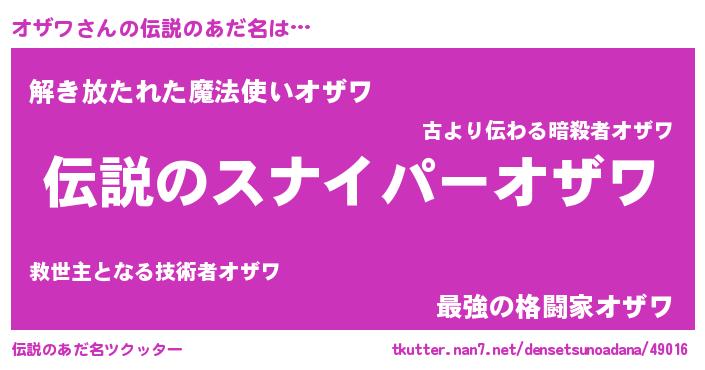 | ヒーロー風カッコイイあだ名 | 『スーパーオザワ』『幻影騎士オザ』 |