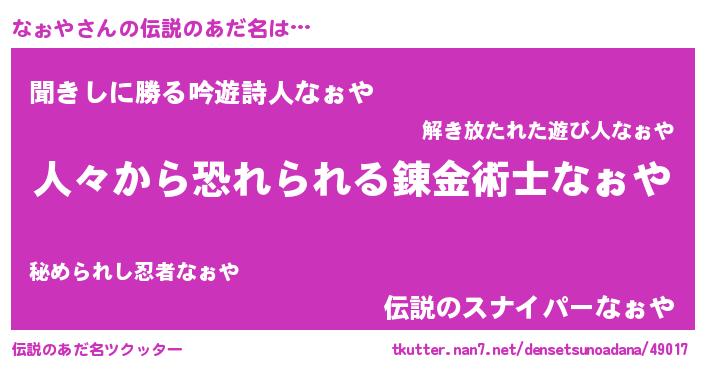 | 男性向けラノベタイトル風あだ名 | 『ナォヤスレイヤー』 |