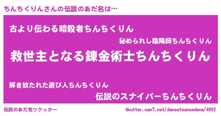 | 男性向けラノベタイトル風あだ名 | 『ノーゲーム・ノーチンチクリン』 |