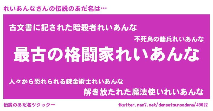 | 男性向けラノベタイトル風あだ名 | 『やはりれいあんなの青春ラブコメはまちがっている 』 |