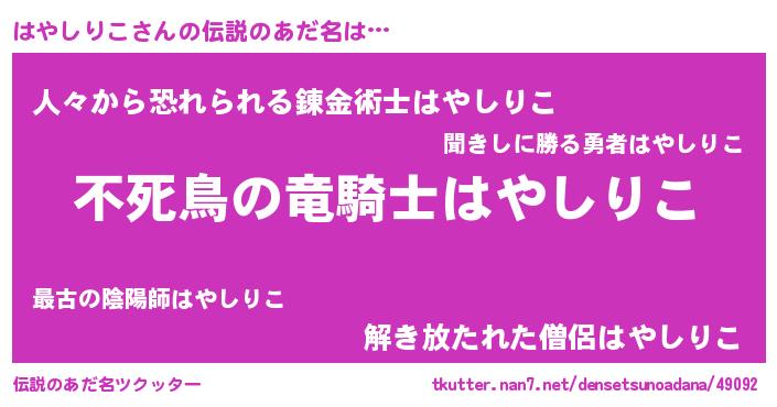 | 女子向けラノベタイトル風あだ名 | 『闇のはやしりこ』『はやしりこ恋絵巻』 |