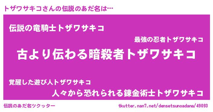 | 胡散臭い通販商品みたいなあだ名 | 『来世でも幸せになれる健康食品…その名も「トザワサキコ」』 |