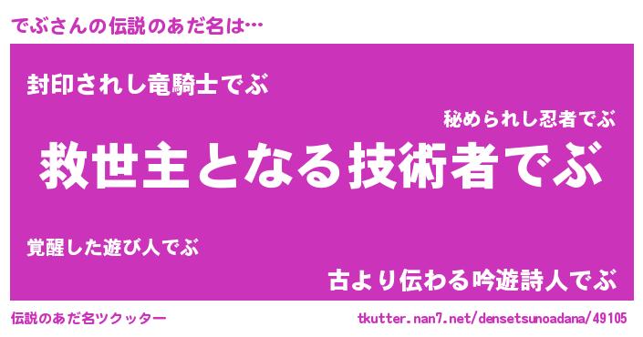 | 男性向けラノベタイトル風あだ名 | 『でぶ~年齢イコール彼女いない歴の魔法使い~』 |