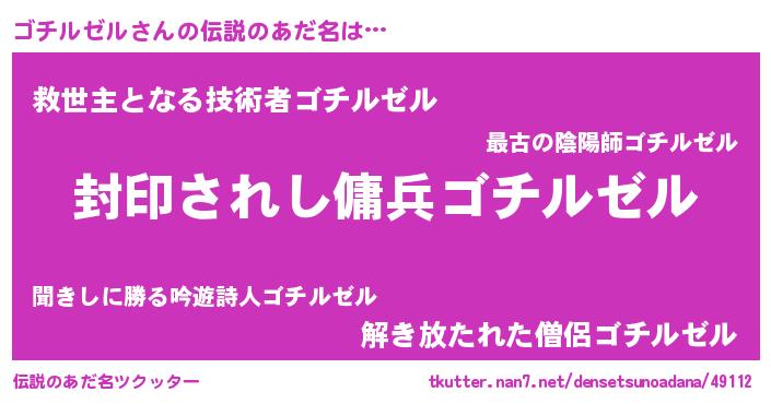 | 女子向けラノベタイトル風あだ名 | 『闇のゴチルゼル』『ゴチルゼル恋絵巻』 |