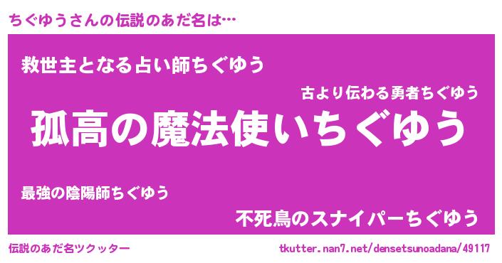 | 意味不明あだ名 | 『とにかく怪しいちぐゆう』 |