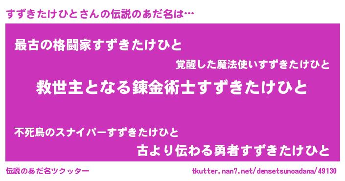 | ヒーロー風カッコイイあだ名 | 『慈愛の使者すずきたけひと』 |