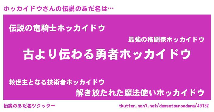 | ヒーロー風カッコイイあだ名 | 『ウルトラ戦士ホッカイドウ』 |