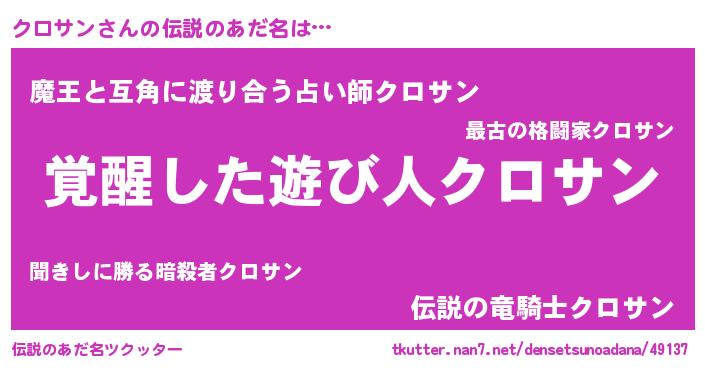 | ヒーロー風カッコイイあだ名 | 『幻影騎士クロ』『愛の使者クロサン』 |