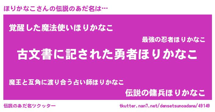 | 意味不明あだ名 | 『永久保存ほりかなこ』『自称ほりかなこ』 |