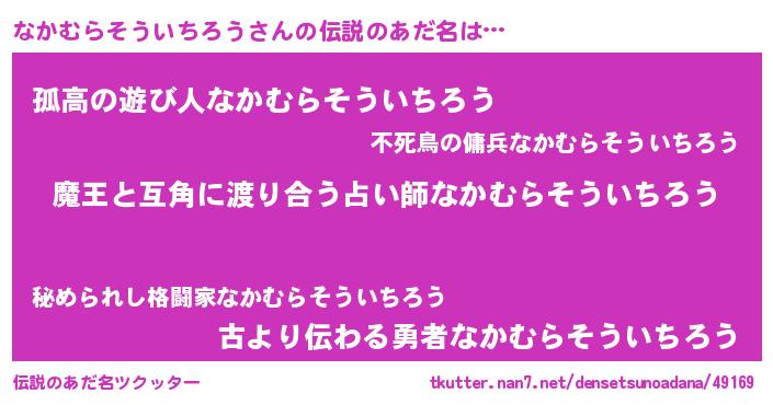 | ヒーロー風カッコイイあだ名 | 『慈愛の使者なかむらそういちろう』 |