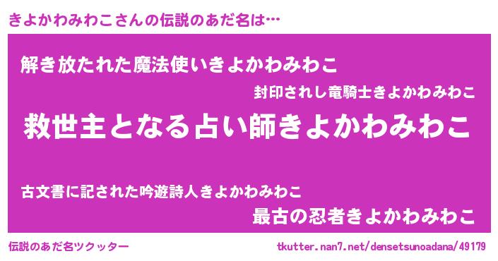 | ヒーロー風カッコイイあだ名 | 『慈愛の使者きよかわみわこ』 |