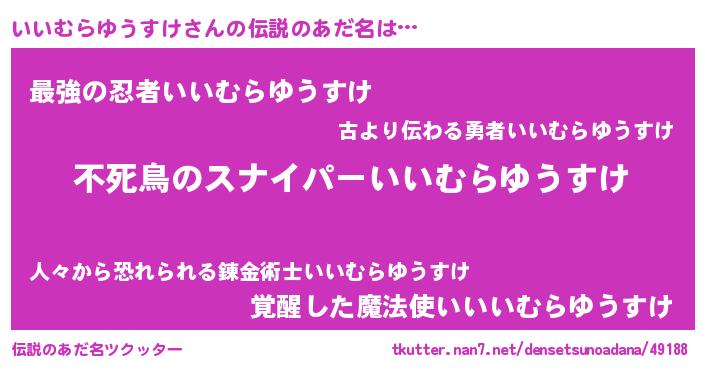 | 男性向けラノベタイトル風あだ名 | 『いいむらゆうすけの憂鬱』 |
