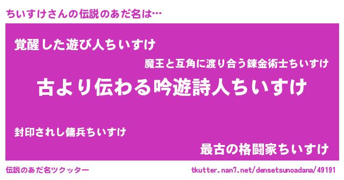 | 意味不明あだ名 | 『永久保存ちいすけ』『自称ちいすけ』 |