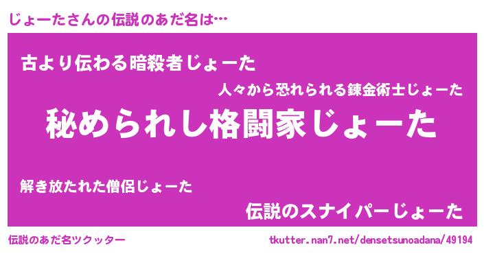 | ファンタジー風あだ名 | 『エターナルジョーター』『ゼジョトゥ』 |