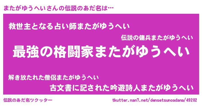 | 意味不明あだ名 | 『またがゆうへいフォーエバー』 |