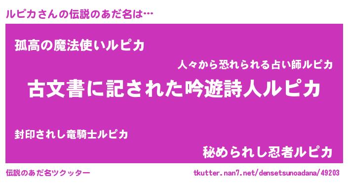 ルピカさんの伝説のあだ名をツクッター!