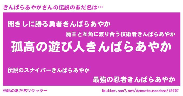 | 女子向けラノベタイトル風あだ名 | 『きんばらあやかは平凡を望む』 |