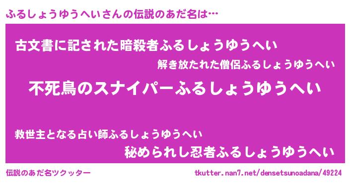 | ヘコむあだ名 | 『ふるもー』『ふるしょうゆうへい(爆)』 |