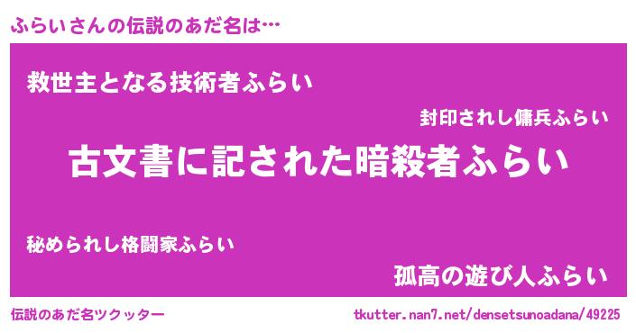 | 女子向けラノベタイトル風あだ名 | 『闇のふらい』『ふらい夫妻のなれそめ』 |