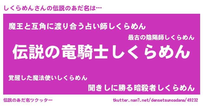 | 胡散臭い通販商品みたいなあだ名 | 『必ず成功するブレスレット…その名も「しくらめん」』 |