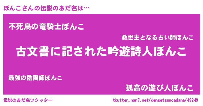 | ヘコむあだ名 | 『ぼんこ(小並感)』『ぼんにゅー』 |