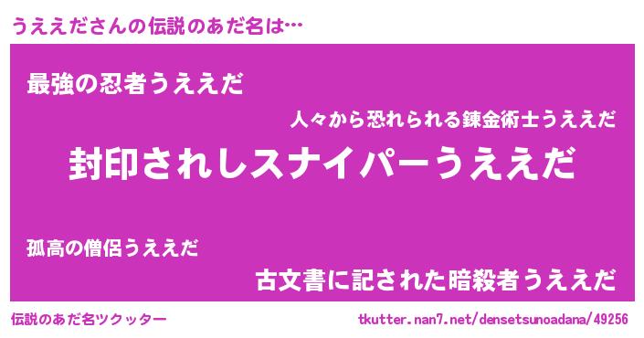 | 男性向けラノベタイトル風あだ名 | 『この素晴らしい世界にうええだを!』 |