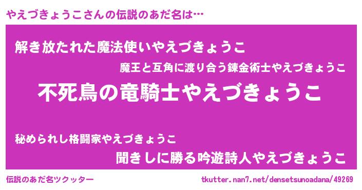 | 意味不明あだ名 | 『住所不定無職やえづきょうこ(12歳)』 |
