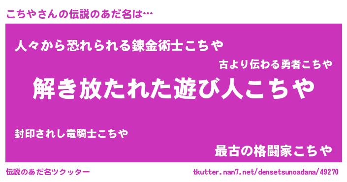 | ヒーロー風カッコイイあだ名 | 『魔戒騎士コチ』『友情の使者こちや』 |