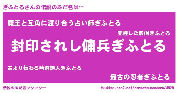 | 女子向けラノベタイトル風あだ名 | 『ぎふとるストレイドッグス』 |