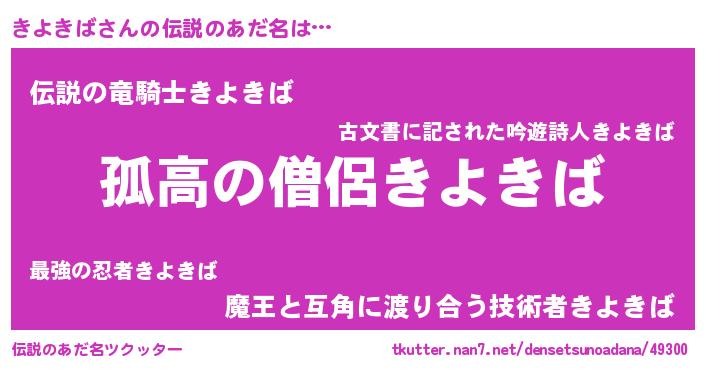 | 意味不明あだ名 | 『とにかく怪しいきよきば』 |