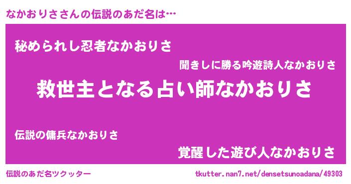 | ヒーロー風カッコイイあだ名 | 『慈愛の使者なかおりさ』『魔戒騎士ナカ』 |