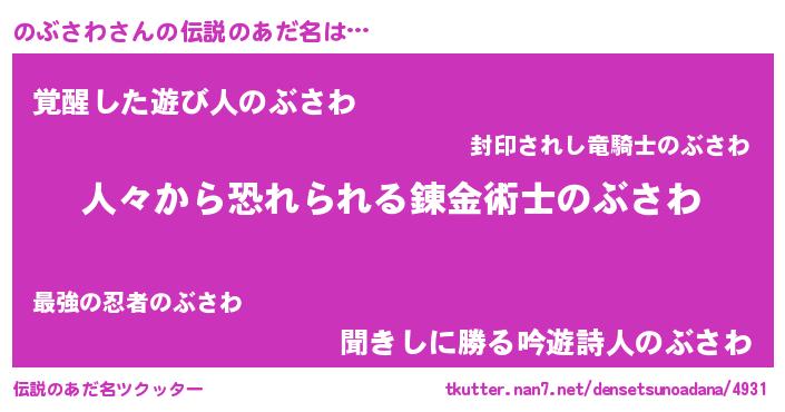 | ヒーロー風カッコイイあだ名 | 『正義の使者のぶさわ』『天弓騎士ノブ』 |