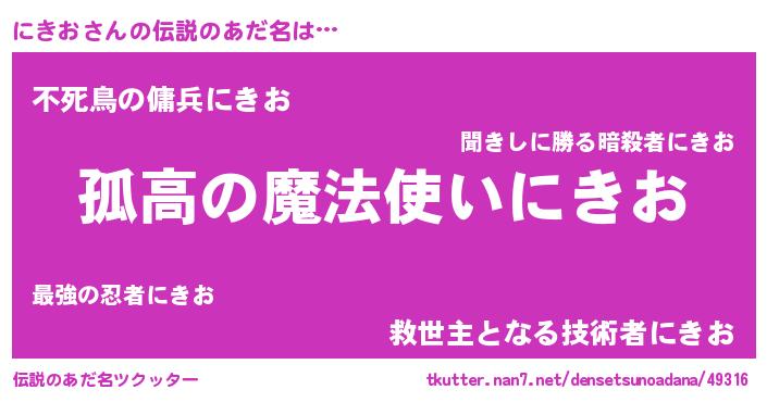 | 意味不明あだ名 | 『住所不定無職にきお(9歳)』 |