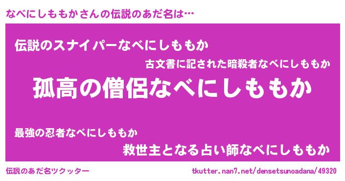 | 意味不明あだ名 | 『とにかく怪しいなべにしももか』 |