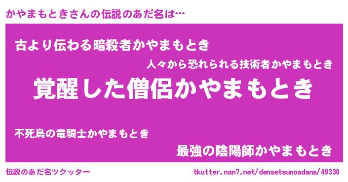 | ヒーロー風カッコイイあだ名 | 『究極戦士カヤマモトキ』『銀牙騎士カヤ』 |