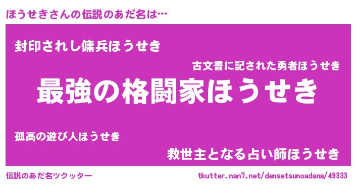 | ポケモン風あだ名 | 『ホウセダネ』『ホウゴンZ』 |