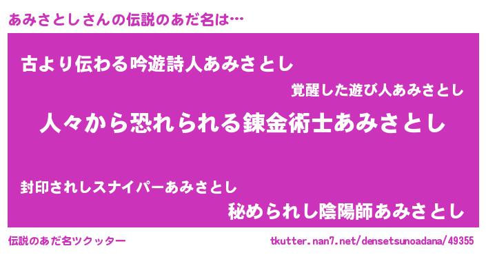 | ヒーロー風カッコイイあだ名 | 『ウルトラ戦士アミサトシ』 |