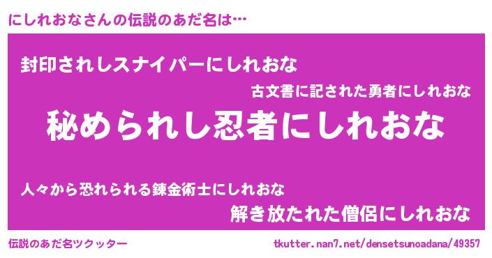 | 意味不明あだ名 | 『にしれおなフォーエバー』 |