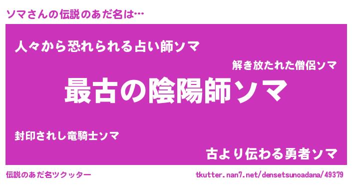 | ヒーロー風カッコイイあだ名 | 『サイバー戦士ソマ』『ウルトラソママン』 |